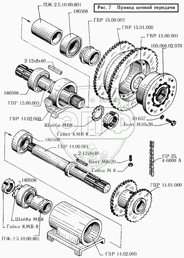 Каталог запасных частей к технике: Бобруйскагромаш ГВР-630. Привод цепной передачи