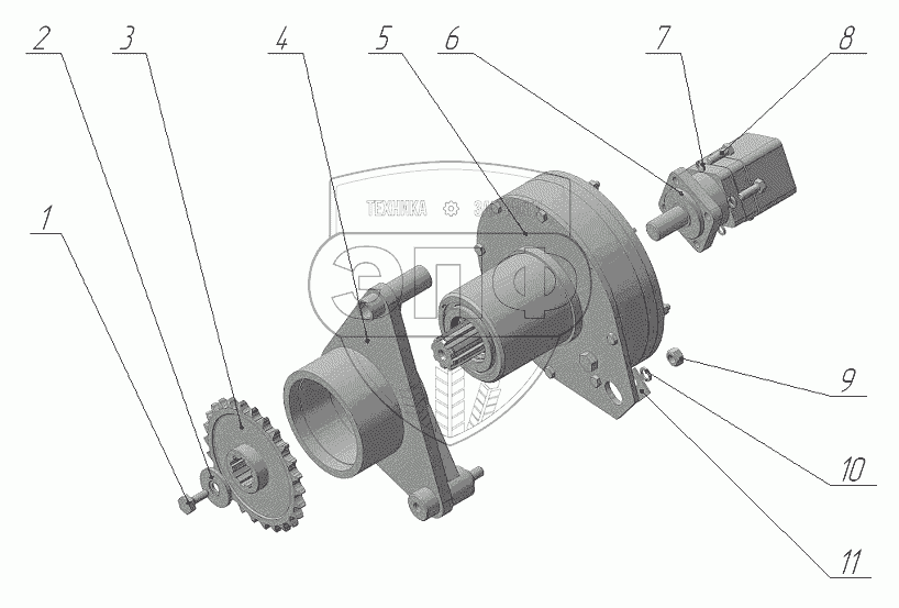 Каталог запасных частей к технике: Бобруйскагромаш ИГК-5. Привод транспортера