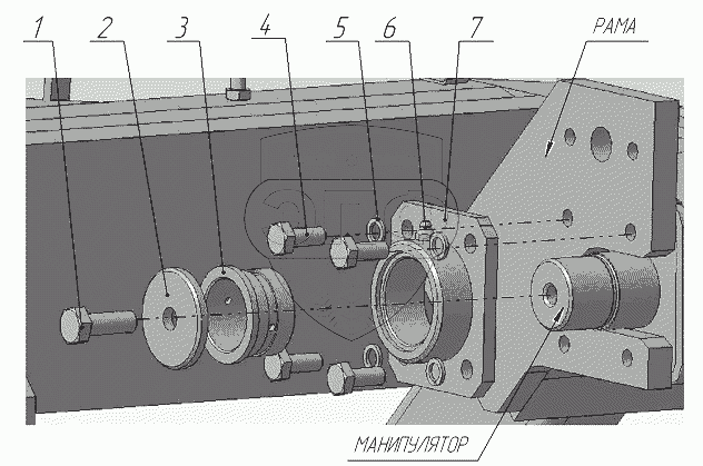 Каталог запасных частей к технике: Бобруйскагромаш ИРК-145. Соединение рамы с манипулятором