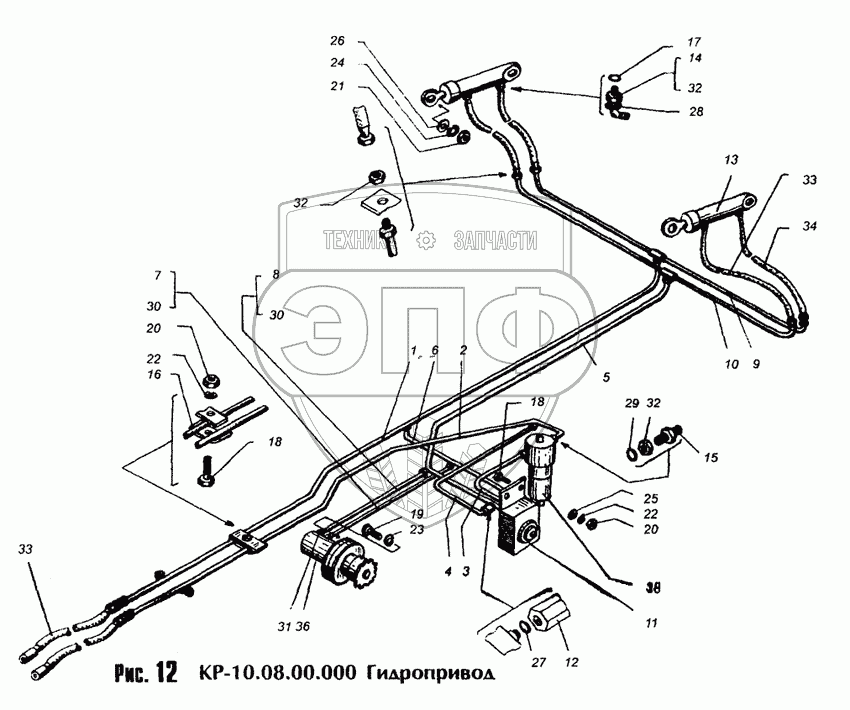 Каталог запасных частей к технике: Бобруйскагромаш КР-Ф-10. Гидропровод