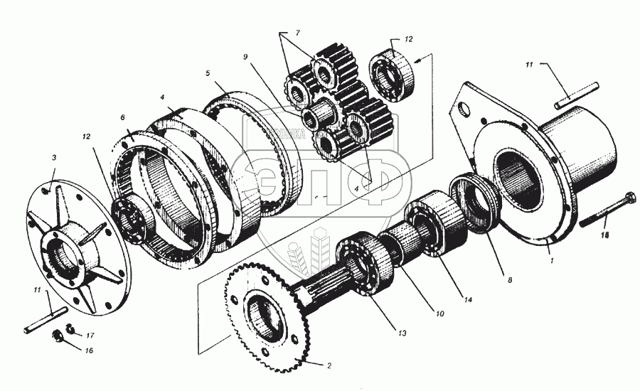Каталог запасных частей к технике: Бобруйскагромаш КР-Ф-10. Редуктор