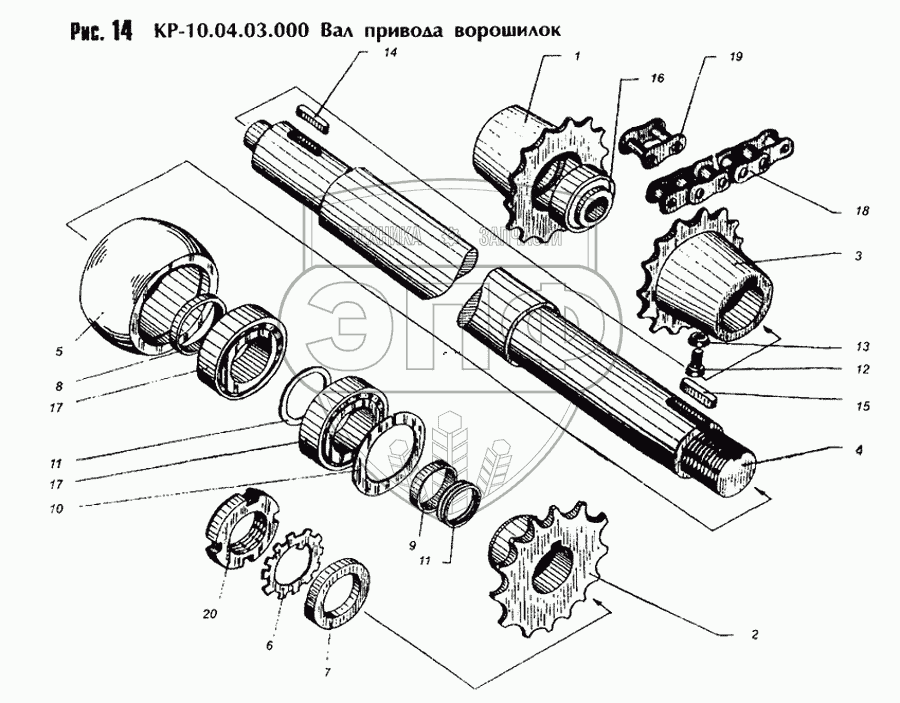 Каталог запасных частей к технике: Бобруйскагромаш КР-Ф-10. Вал привода ворошилок