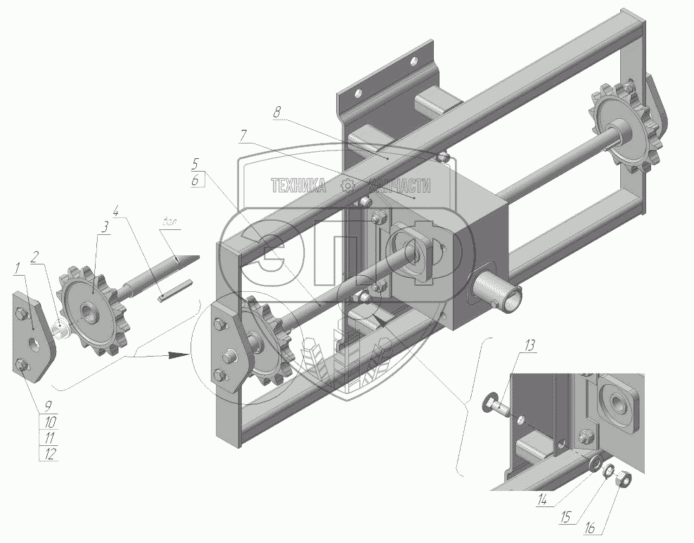 Каталог запасных частей к технике: Бобруйскагромаш МХС-10. Привод шиберов