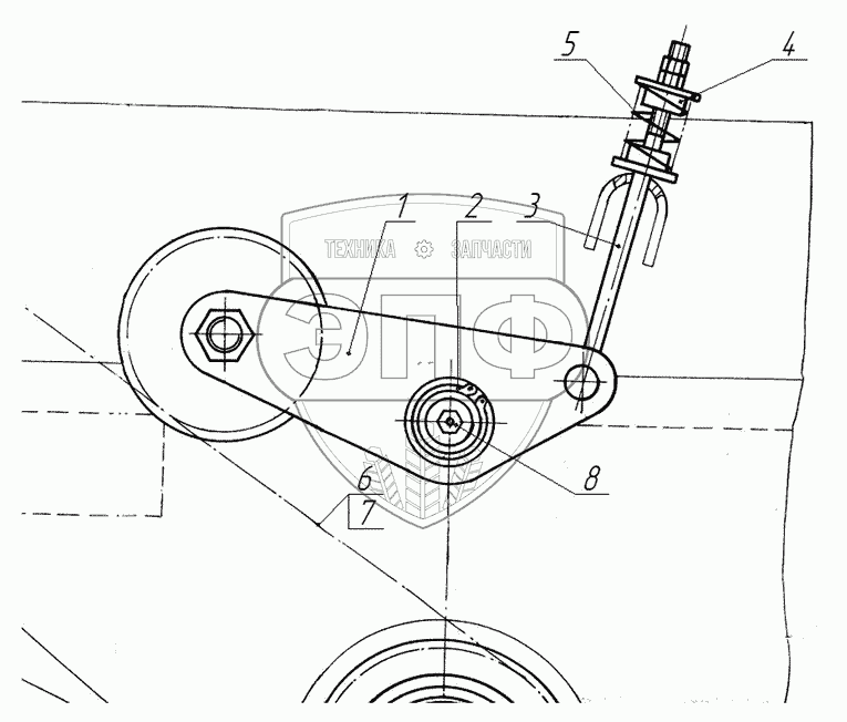 Каталог запасных частей к технике: Бобруйскагромаш МТТ-4У. Натяжное устройство