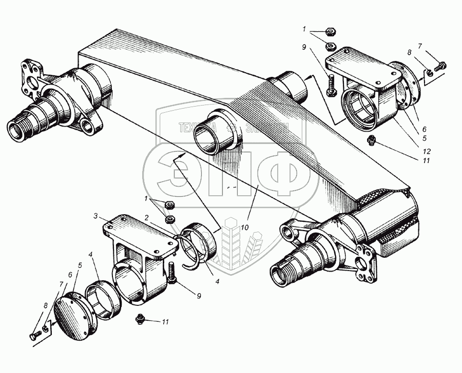 Каталог запасных частей к технике: Бобруйскагромаш МЖТ-10. Балансир с цапфами и кронштейнами