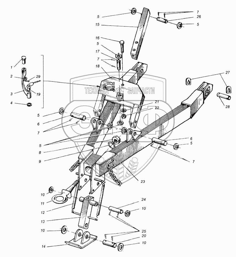 Каталог запасных частей к технике: Бобруйскагромаш МЖТ-10. Дышло в сборе