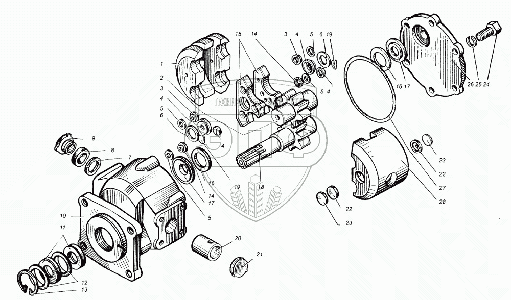 Каталог запасных частей к технике: Бобруйскагромаш МЖТ-10. Гидромотор ГМШ-32.1233