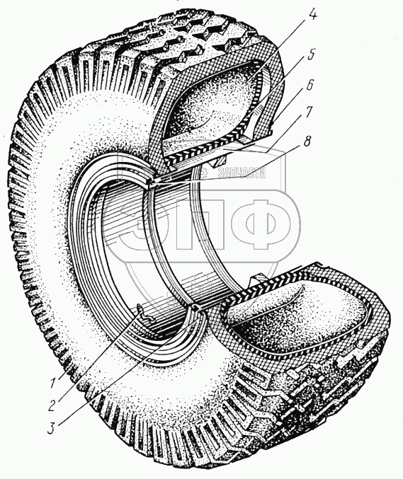 Каталог запасных частей к технике: Бобруйскагромаш МЖТ-11. Колесо с шиной