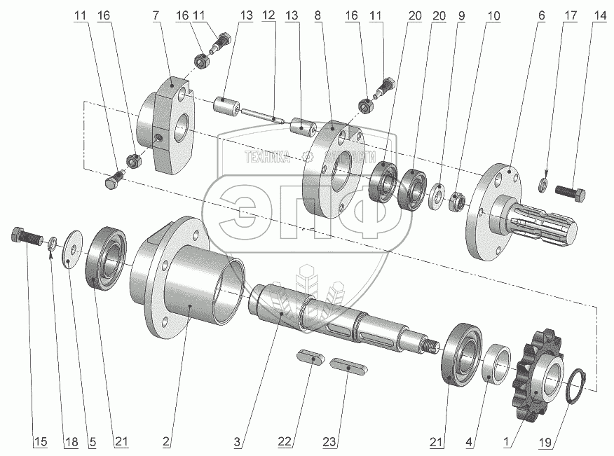 Каталог запасных частей к технике: Бобруйскагромаш ОЛ-140 "Долгунец". Контрпривод с предохранительной муфтой