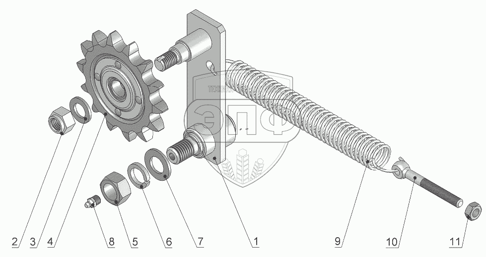 Каталог запасных частей к технике: Бобруйскагромаш ОЛ-140 "Долгунец". Натяжник в сборе