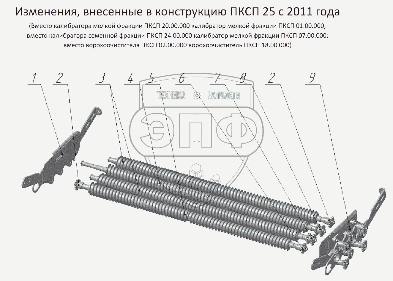 Каталог запасных частей к технике: Бобруйскагромаш ПКСП-25. Калибратор мелкой фракции