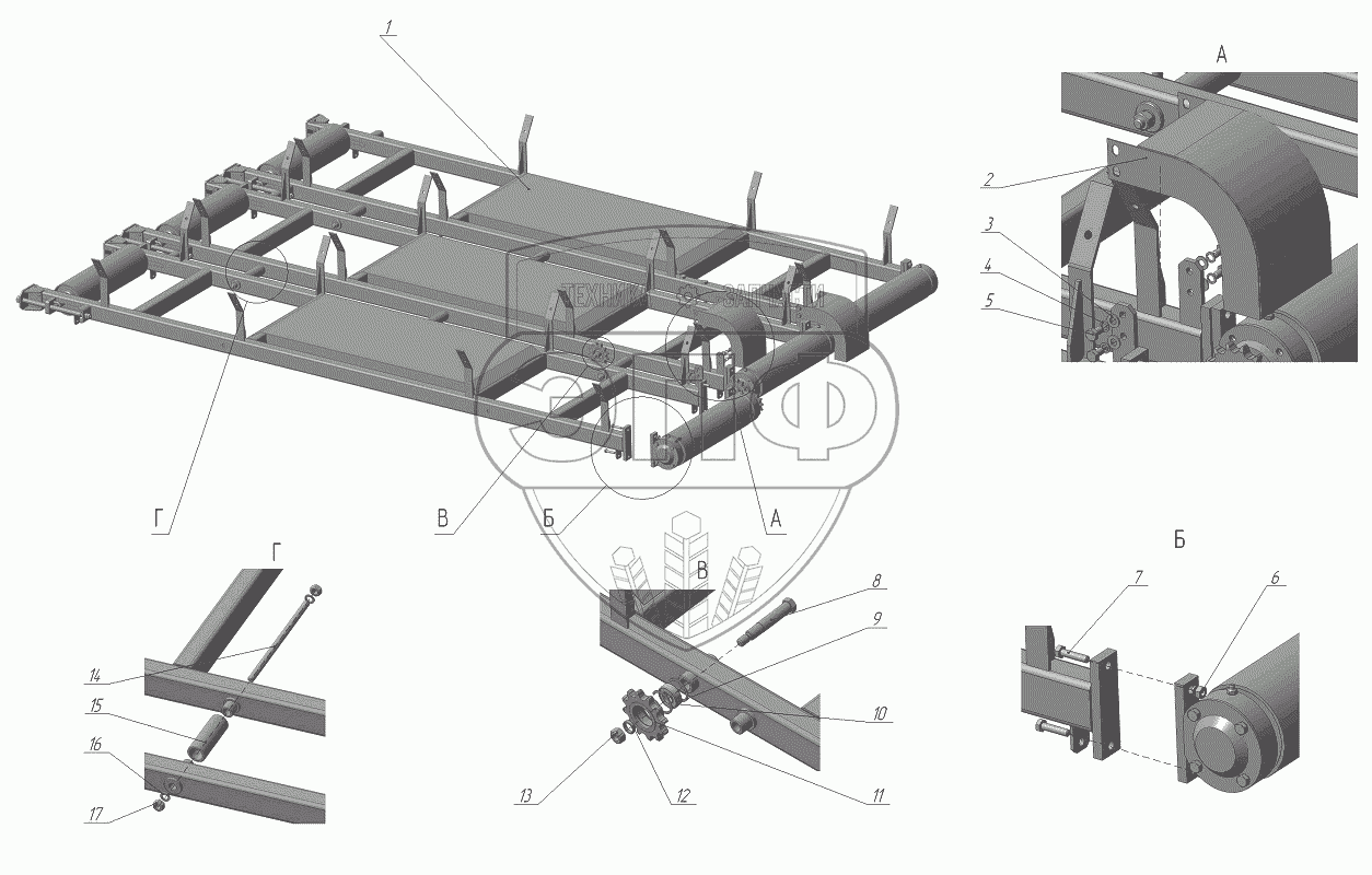 Каталог запасных частей к технике: Бобруйскагромаш ПКСП-25. Основание в сборе с барабанами