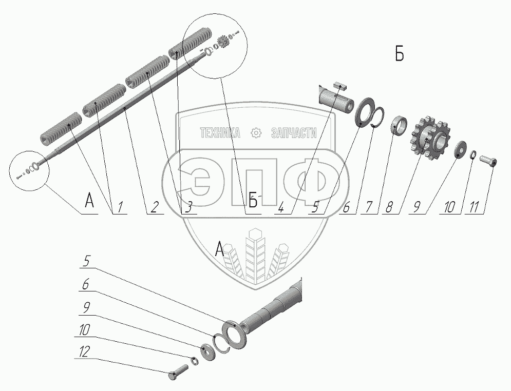 Каталог запасных частей к технике: Бобруйскагромаш ПКСП-25. Вал