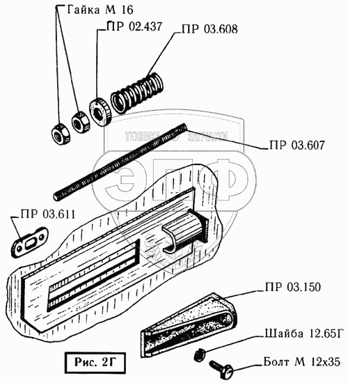 Каталог запасных частей к технике: Бобруйскагромаш ПРФ-750. Натяжное устройство вала ведомого