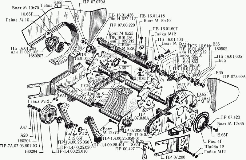 Каталог запасных частей к технике: Бобруйскагромаш ПРФ-750. Подборщик