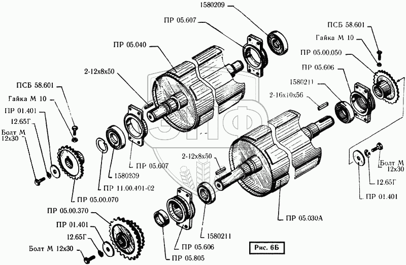 Каталог запасных частей к технике: Бобруйскагромаш ПРФ-750. Вальцы передний и задний