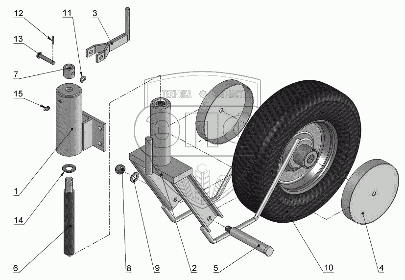 Каталог запасных частей к технике: Бобруйскагромаш ПРЛ-150. Колесо копирующее