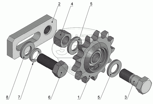 Каталог запасных частей к технике: Бобруйскагромаш ПРЛ-150. Натяжник в сборе