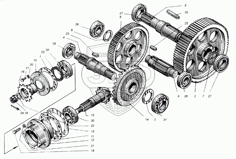 Каталог запасных частей к технике: Бобруйскагромаш ПРТ-10. Механизм редуктора