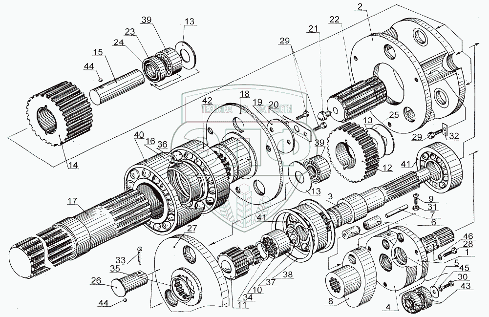 Каталог запасных частей к технике: Бобруйскагромаш РСК-12 «БелМикс». Механизм передачи редуктора