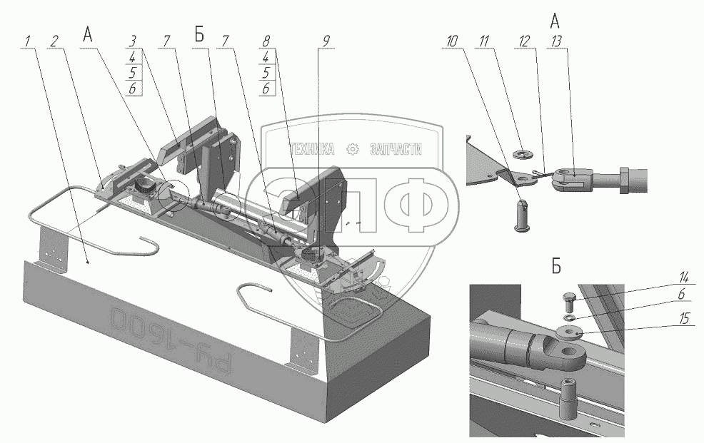 Каталог запасных частей к технике: Бобруйскагромаш РУ-1600. Бункер в сборе с гидроцилиндрами