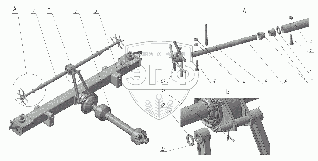 Каталог запасных частей к технике: Бобруйскагромаш РУ-1600. Вал в сборе с приводом