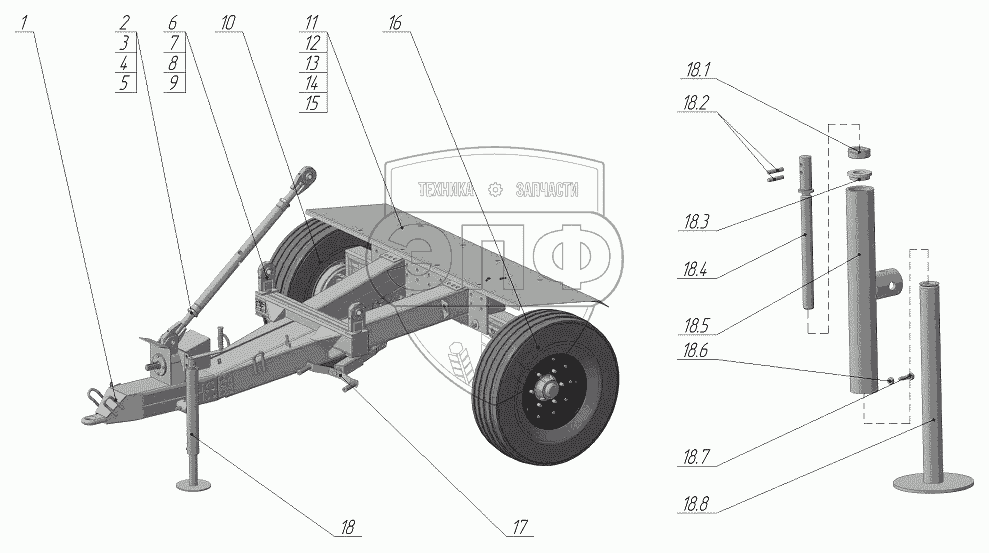 Каталог запасных частей к технике: Бобруйскагромаш РУ-3000. Шасси технологическое