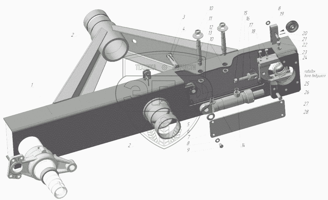 Каталог запасных частей к технике: Бобруйскагромаш РУ-7000. Балансир с цапфой ведущий