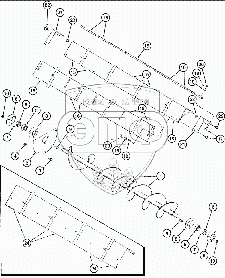 Каталог запасных частей к технике: CASE IH Axial Flow 2388. AUGERS - GRAIN TANK, LOWER