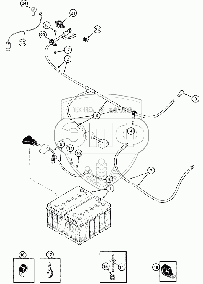 Каталог запасных частей к технике: CASE IH Axial Flow 2388. BATTERY - CABLES