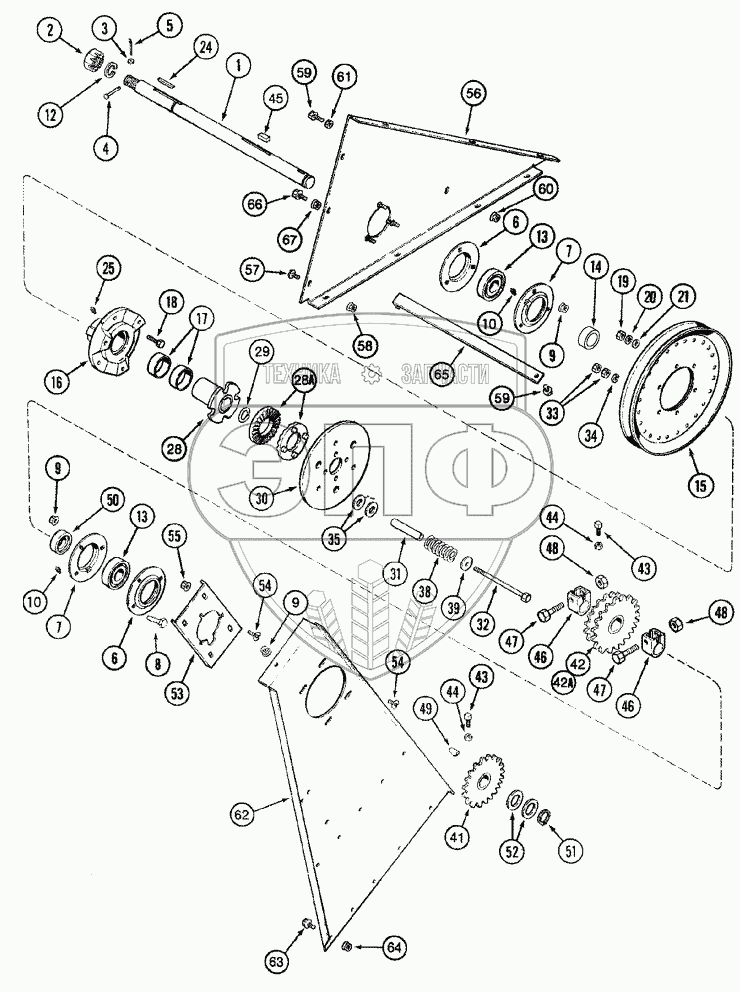 Каталог запасных частей к технике: CASE IH Axial Flow 2388. ELEVATOR - JACKSHAFT, DRIVE