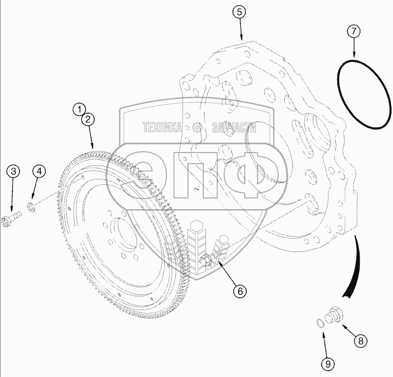 Каталог запасных частей к технике: CASE IH Axial Flow 2388. FLYWHEEL AND BACKING PLATE