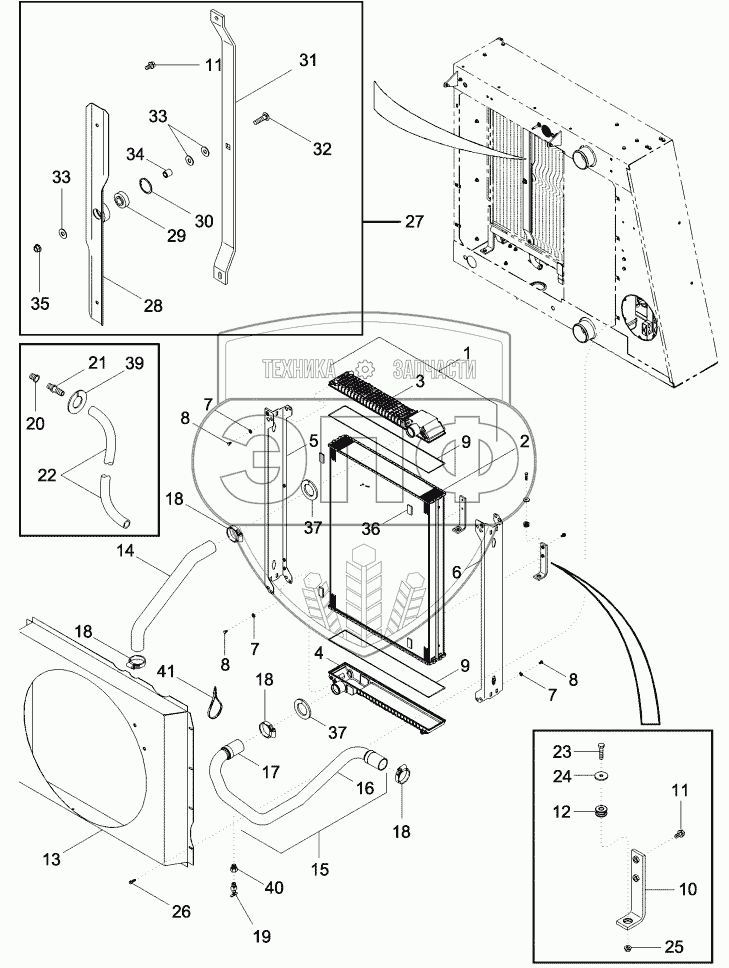 Каталог запасных частей к технике: CASE IH Axial Flow 2388. RADIATOR - FAN SHROUD