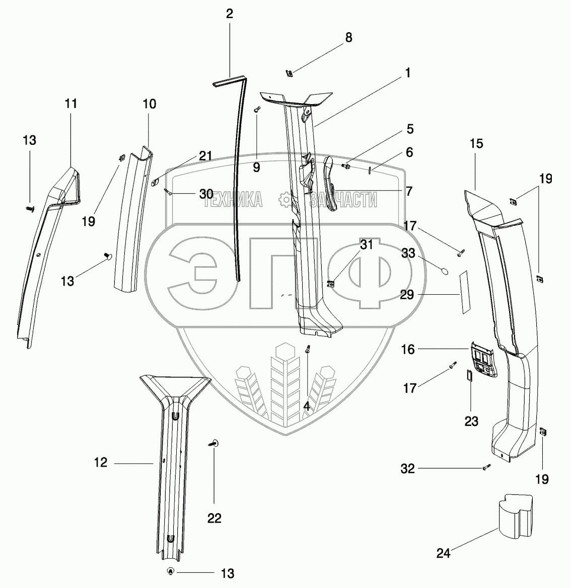 Каталог запасных частей к технике: CASE IH MX-240 Magnum. CAB - TRIM, CAB POSTS