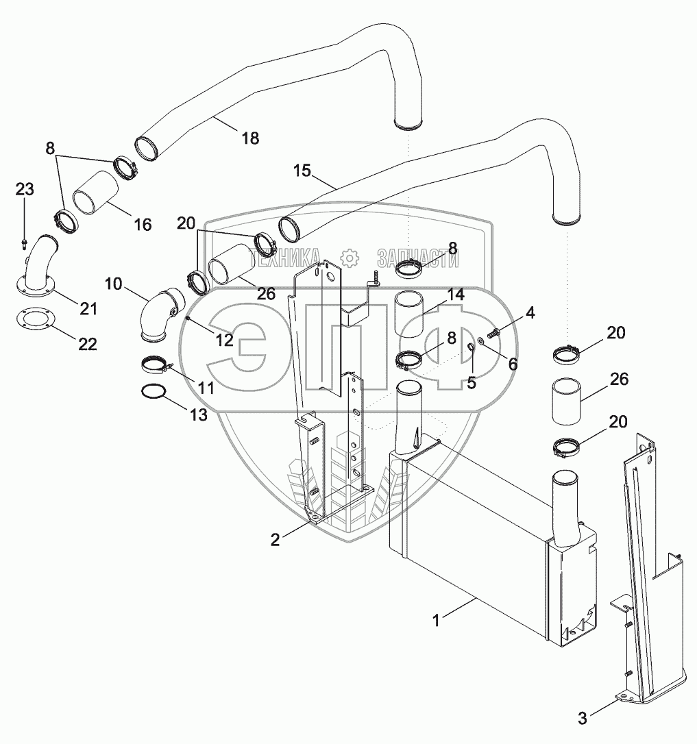 Каталог запасных частей к технике: CASE IH MX-255 Magnum. AFTERCOOLER