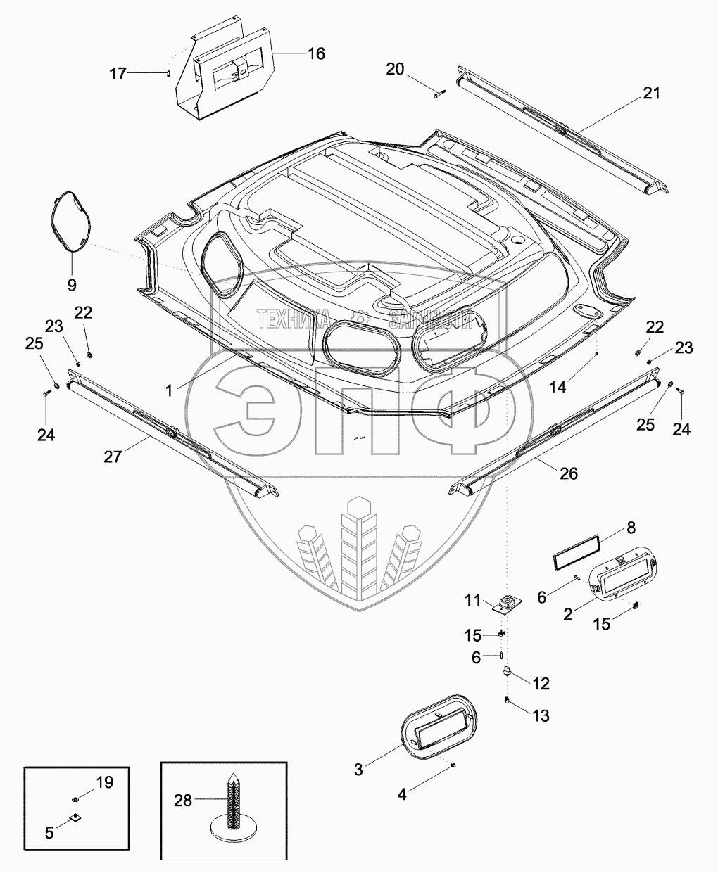 Каталог запасных частей к технике: CASE IH MX-255 Magnum. CAB - HEADLINER, STANDARD TRIM