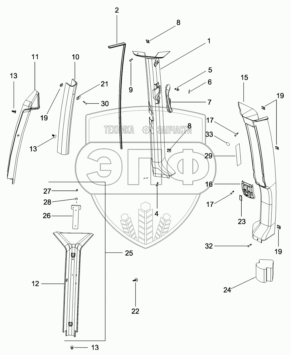 Каталог запасных частей к технике: CASE IH MX-255 Magnum. CAB - TRIM, CAB POSTS