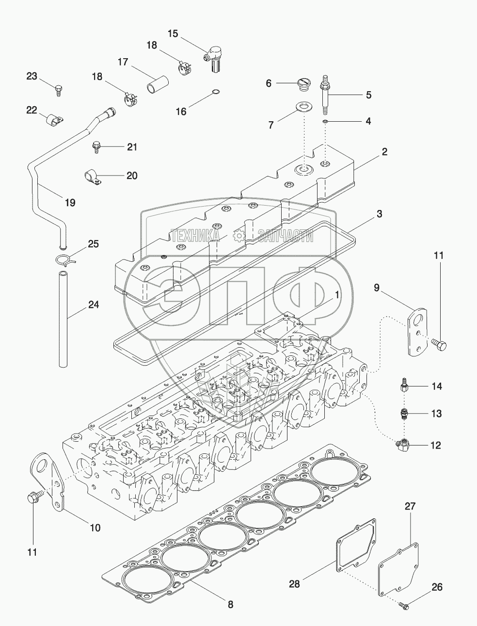 Каталог запасных частей к технике: CASE IH MX-255 Magnum. CYLINDER HEAD - COVER