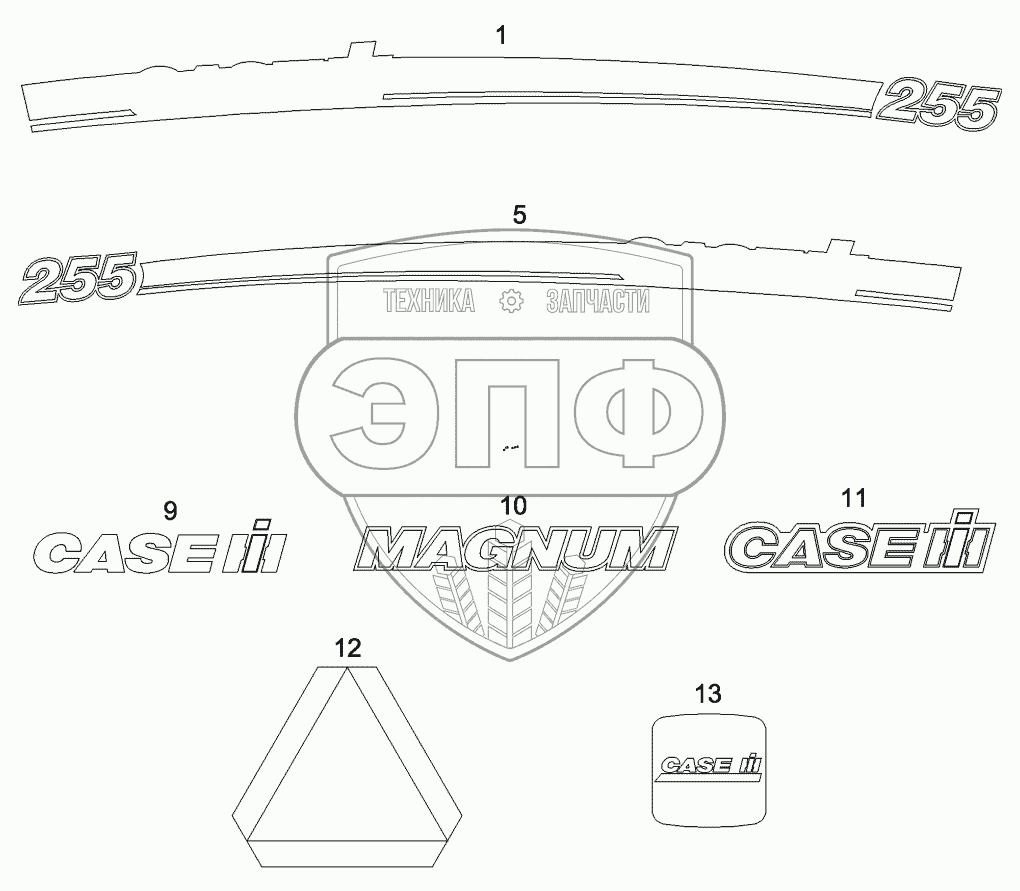 Каталог запасных частей к технике: CASE IH MX-255 Magnum. DECALS