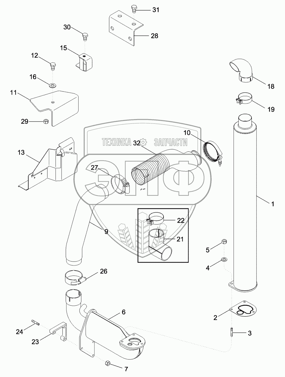 Каталог запасных частей к технике: CASE IH MX-255 Magnum. EXHAUST SYSTEM