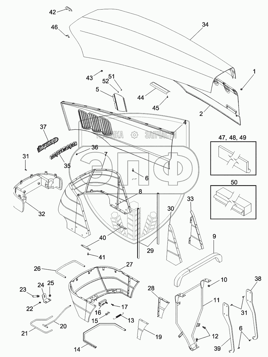 Каталог запасных частей к технике: CASE IH MX-255 Magnum. HOOD - TILTING