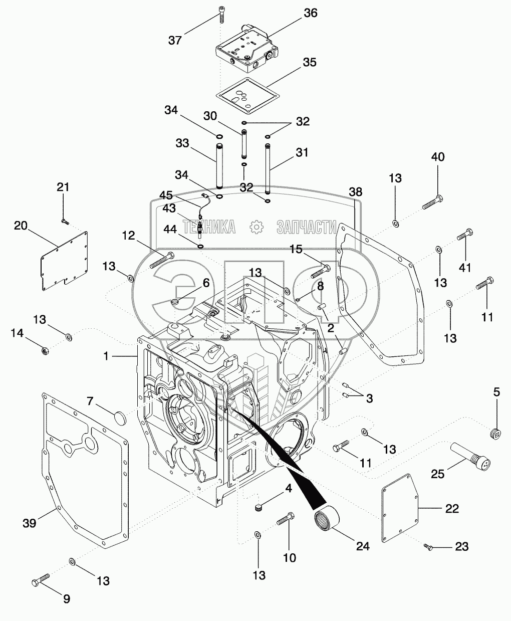 Каталог запасных частей к технике: CASE IH MX-255 Magnum. RANGE TRANSMISSION - HOUSING