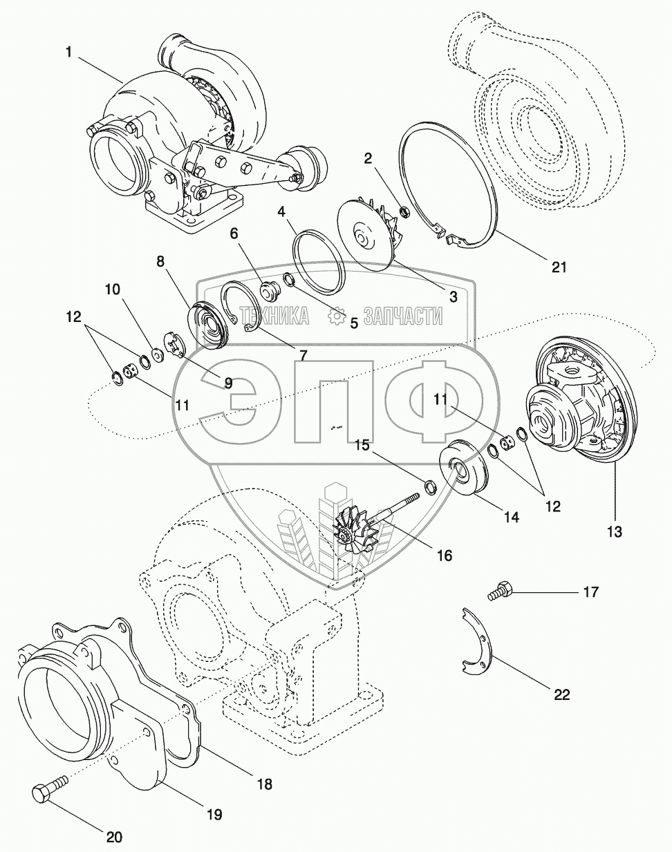 Каталог запасных частей к технике: CASE IH MX-255 Magnum. TURBOCHARGER ASSEMBLY