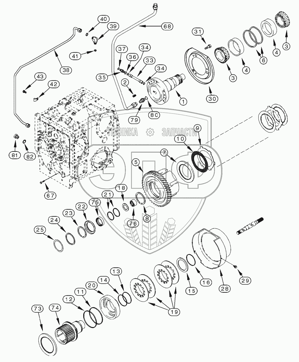 Каталог запасных частей к технике: CASE IH MX-285 Magnum. RANGE TRANSMISSION - MFD CLUTCH