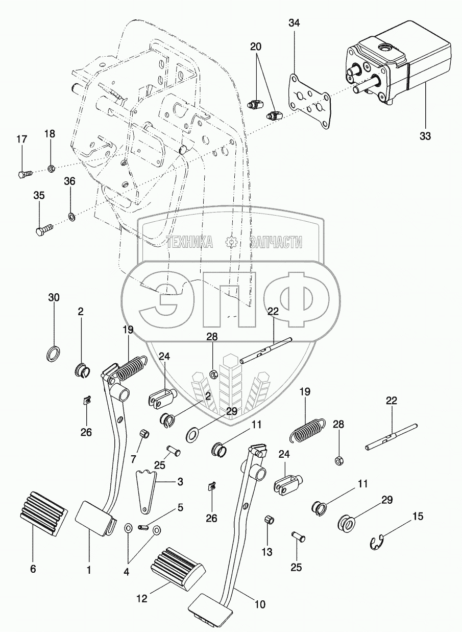 Каталог запасных частей к технике: CASE IH MX-305 Magnum. BRAKES - PEDAL BRAKE