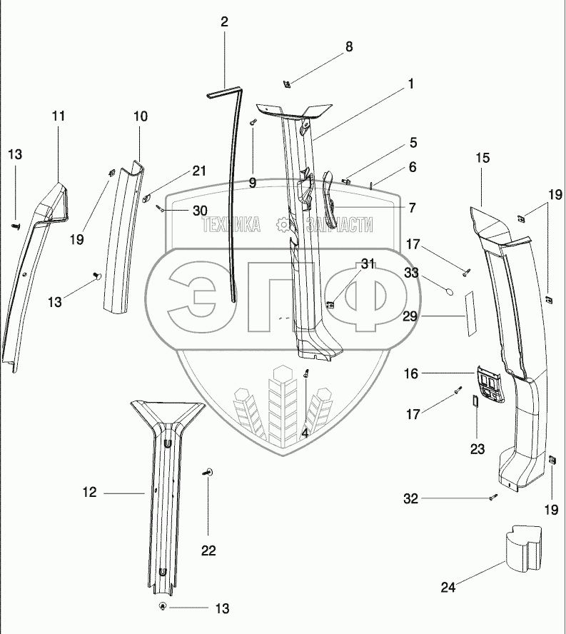 Каталог запасных частей к технике: CASE IH MX-305 Magnum. CAB - TRIM, CAB POSTS