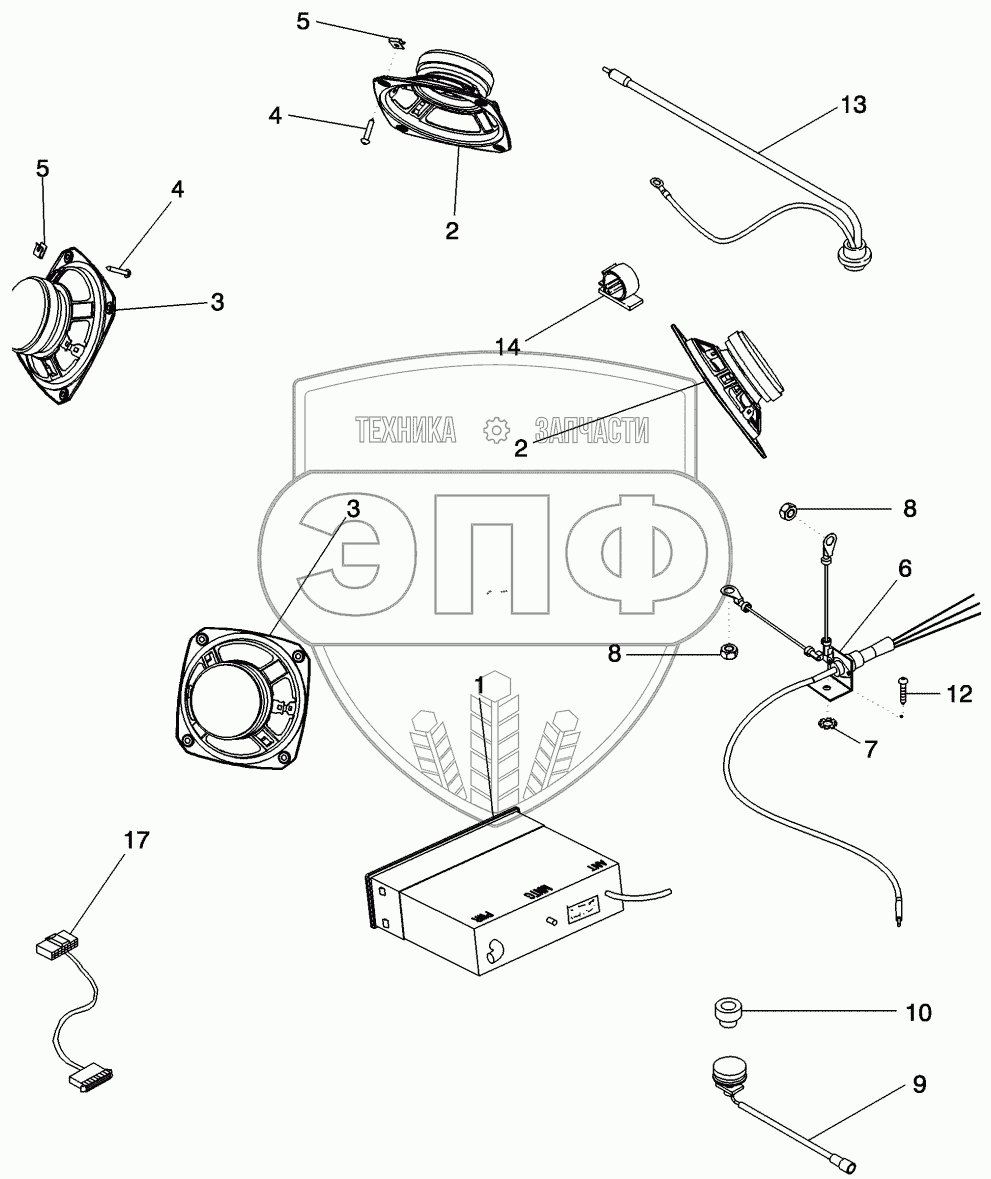 Каталог запасных частей к технике: CASE IH MX-305 Magnum. RADIOS, SPEAKERS AND ANTENNAS