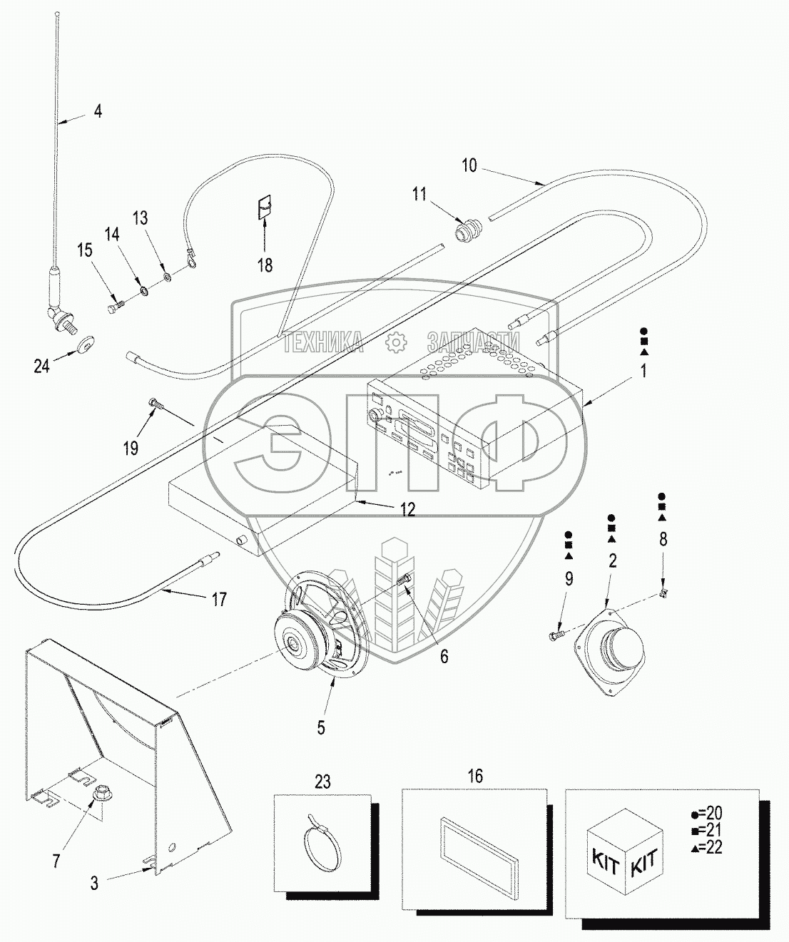 Каталог запасных частей к технике: CASE IH STX-530 Steiger. RADIO AND SPEAKERS
