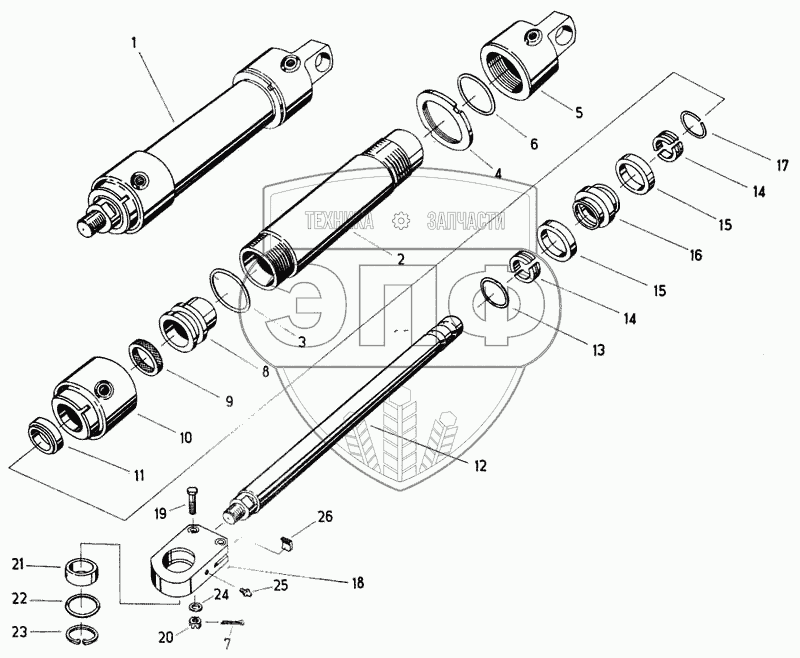 Каталог запасных частей к технике: Fortschritt Е-281-С. Рабочий цилиндр - управление