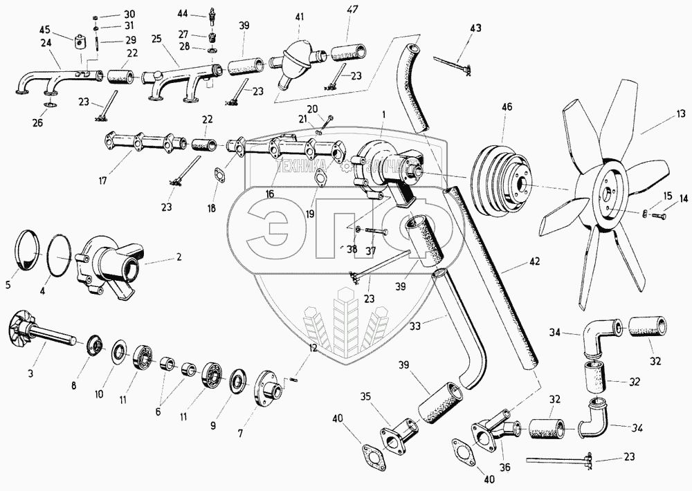 Каталог запасных частей к технике: Fortschritt Е-281-С. Система охлаждения